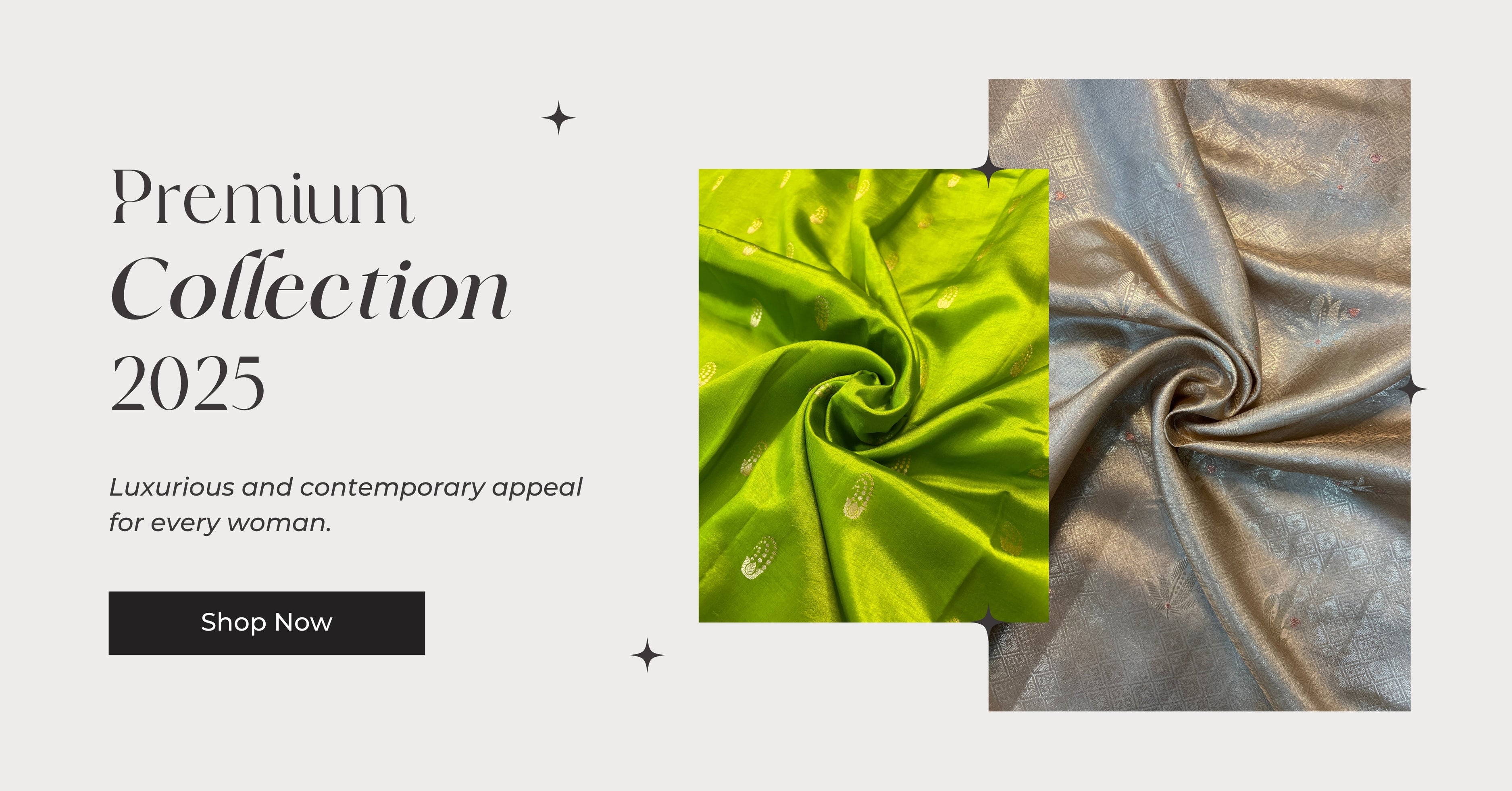 - Banarasi Katan Sarees: Pure silk threads are woven in a traditional style for a soft, durable, and elegant texture
